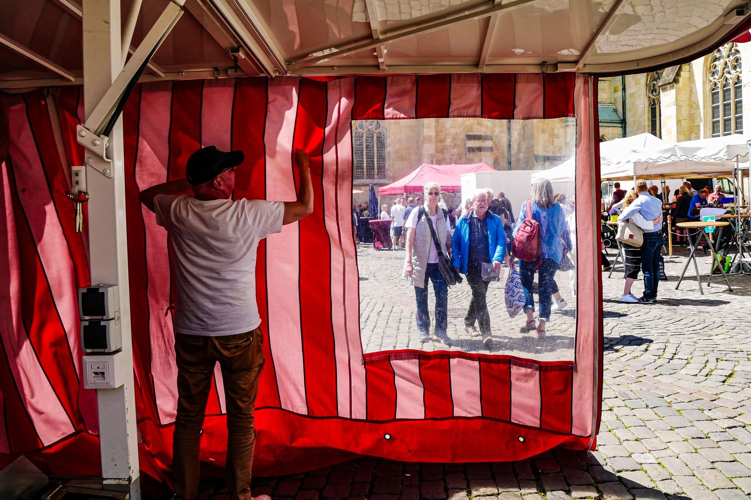 One of my favorite places in my hometown is the weekly market right in front of St. Paulus Cathedral. Every Wednesday and Saturday, market stalls with delicious fruits and vegetables, all sorts of bread, rolls and cakes, colorful flowers, fresh meat and fish are attracting people from near and far. It´s the place to have a cup of coffee with friends or share some French fries or Dutch Kibbelings for a quick lunch - A place where old and young come together.
